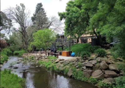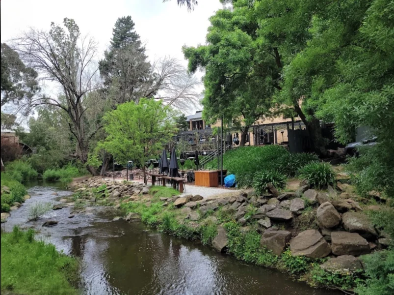 The inn is across a creek from the Heysen Trail, which gives good views of the inn from a public space.